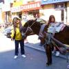 驴吉普进城卖大米 两女孩献橘小毛驴