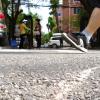 金蟾蜍一般都摆在办公室的办公桌上,而营口的这户人家却把两只金蟾蜍安放在住宅小院的门垛上。