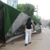 营口:路边围栏歪倒数日无人处理