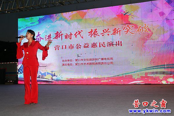 营口之窗网讯(李凯 摄影报道)6月17日晚,由营口市文化旅游和广播电视局主办的“奋进新时代 振兴新突破 ”营口市公益惠民演出在市平安广场举行,来自营口市艺术剧院的演职人员为市民奉献了一场丰富多彩的文艺惠民演出。