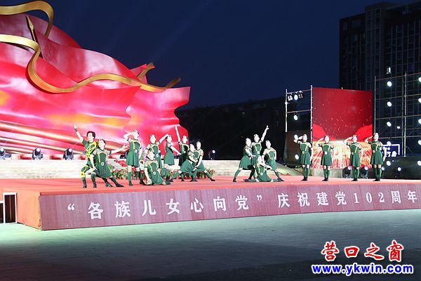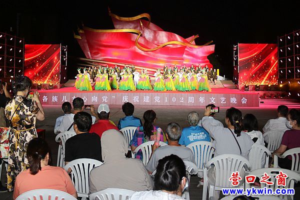 营口之窗网讯(李凯 摄影报道)6月29日晚,为庆祝中国共产党成立102周年,一场由营口市文化旅游和广播电视局、中共营口市委党史研究室主办,营口市文化旅游事业发展服务中心、西市区文化旅游和广播电视局、老边区文化旅游和广播电视局协办的“各族儿女心向党”庆祝建党102周年文艺晚会在市红旗广场隆重举行。