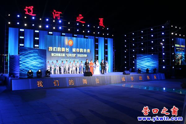 营口之窗网讯(李凯 摄影报道)6月30日晚,以“我们的舞台 城市的未来”为主题的第三届“辽河之夏”文化艺术季在营口辽河岸畔老街渡口文化广场盛大启幕。