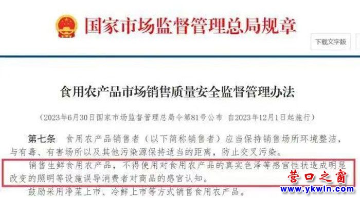 其原因就是他们用普通灯取代了生鲜灯的照射,因为市场监管部门从12月1日起,禁止商家在出售食用农副产品时使用生鲜灯。这样一来,在肉蛋果蔬鱼虾等柜台照射了多年的生鲜灯从此就下岗了。