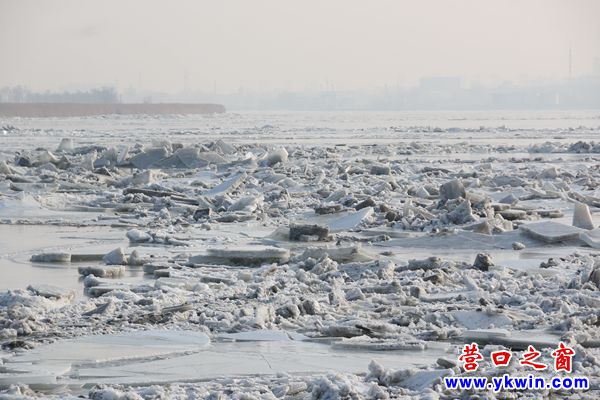 营口之窗网讯(李凯 摄影报道)12月29日,刚刚封冻的大辽河营口城区段西部又浮冰涌动,出现冰排奇观。