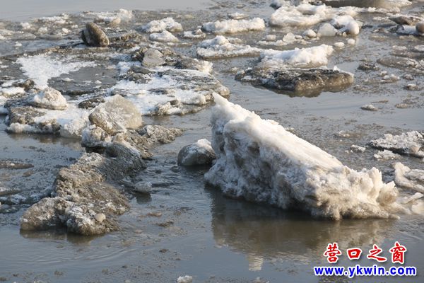 本月22日,营口之窗网就营口大辽河封冻的消息做了报道。可随着这几天的气温回暖,刚刚封冻的大辽河,又形成“流冰”景象。一片片形态各异的冰块在大辽河中相互簇拥、挤压、碰撞,发出一阵阵“咔咔”的撞击声,或堆积在岸边,或聚合重组,打着漩游滑,远远望去,气势颇为壮观。