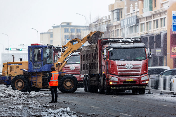 天刚蒙蒙亮,城市还在沉睡,营口环卫工人的身影就已经出现在街头巷尾。橘红色的工作服在一片雪白中格外醒目,铲车将路面的积雪推到两侧,然后装到斗车里,运出市外,清雪车轰隆作响,沿着干道缓缓前行,,露出干净整洁的柏油路面,小型铲雪车则穿梭在背街小巷,灵活地清理着犄角旮旯的积雪。