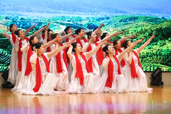 由程远平、王辉以朗诵+领唱形式,演绎《毛主席诗词诵唱》,将文字的磅礴气势与旋律的感染力深度融合,以鲜活的艺术形式让观众重温峥嵘岁月;心随舞动舞蹈团带来的朝鲜长鼓舞《红太阳照边疆》中,李敏等表演者身着绚丽民族服饰,鼓点铿锵、舞姿灵动,欢快节奏里满是各族人民对领袖的爱戴与美好生活的向往,画面鲜活感染力十足;美会艺术团的舞蹈《江山》,在领舞张云华的带领下,舞者以舒展优美的肢体语言,生动诠释“江山就是人民,人民就是江山”的深刻内涵,舞美与意境完美融合,令人沉醉;双鹰艺术团刘庆英、陈晓红领舞的《七律·长征》,通过激昂的编排与刚劲有力的动作,再现红军“万水千山只等闲”的英雄气概,让观众仿佛置身那段艰苦卓绝却热血沸腾的远征岁月,深刻感悟革命先辈的坚定信念与奋斗精神。