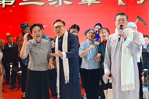 第二乐章“爱乐情结”聚焦多元艺术表达。表演合唱《营口这个地儿》饱含地域情怀,无伴奏合唱《远情》以纯粹人声传递真挚情感,杨伟识等四人的男声四重唱《幸福永相随》、王丽娜等的女声小合唱《葡萄园夜曲》各具韵味;萨克斯三重奏《红河谷》、舞蹈《大红枣儿香又甜》、戏剧联唱等节目跨界融合,总导演张秀媛的即兴独舞《梁祝》更是将氛围推向高潮,男女声二重唱《春天中国》以昂扬姿态致敬新时代。