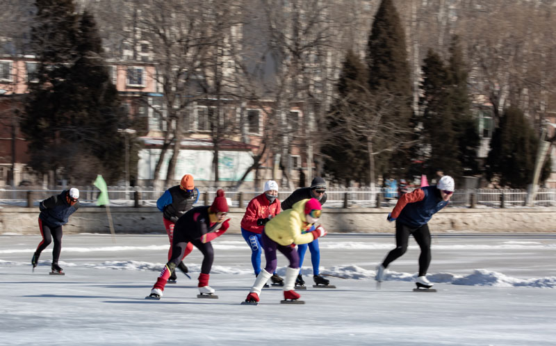 冰面上成了最鲜活的天地,滑冰爱好者们成了这里的主角,身姿舒展地滑出流畅的弧线,风掠过发梢,脸上是畅快的笑意;时而并肩滑行,时而轻轻擦肩,冰面上传来冰刀划过的 “唰唰” 声,成了冬日里独有的韵律,在冬日里把锻炼的活力拉的满满的。