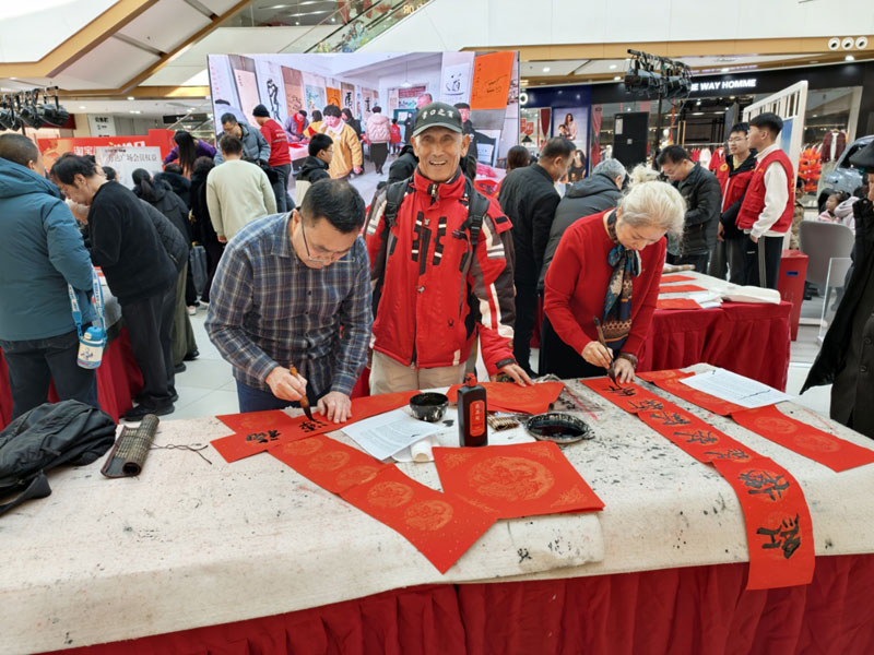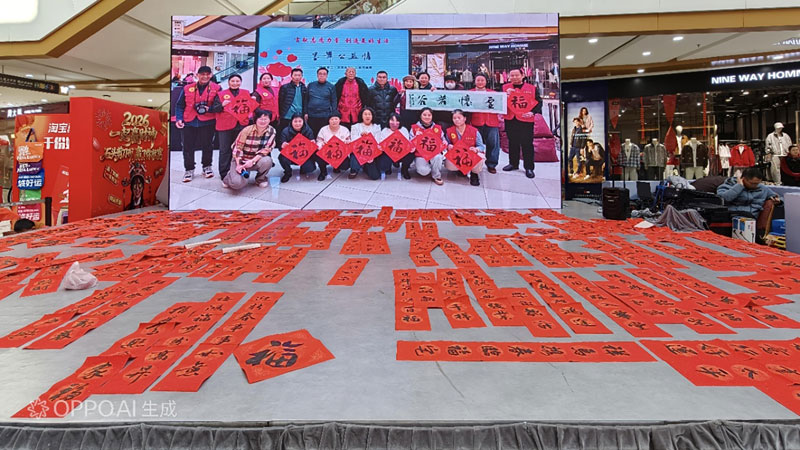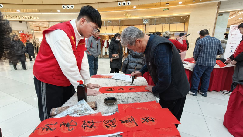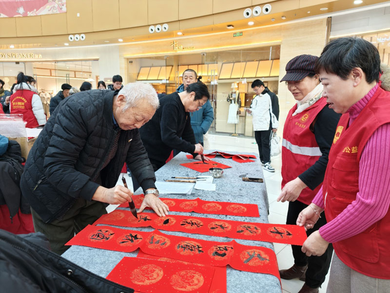 营口市志愿服务联合会公益书画院春节送福活动在营口市鲅鱼圈区委社会工作部指导、鲅鱼圈万达广场支持下,在万达广场如期举行,现场七位书画老师挥毫泼墨,左手执笔绘春秋,右心持善暖人间,艺术与善意同行,演绎了一场充满迎新春“年味”“文化味”与“烟火气”的送福活动。不仅为即将到来的春节增添了浓浓年味,更搭建起艺术家与群众之间的情感桥梁,书写了新时代公益事业的生动篇章!