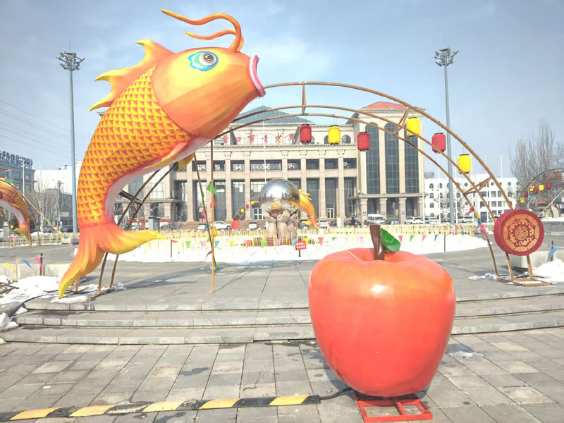欣赏过“骏马”,走进希望广场。这里更让人眼前一亮。只见四条“鲤鱼”正在跳龙门。这是对营口城乡十五五开局旗开得胜的美好祝愿。