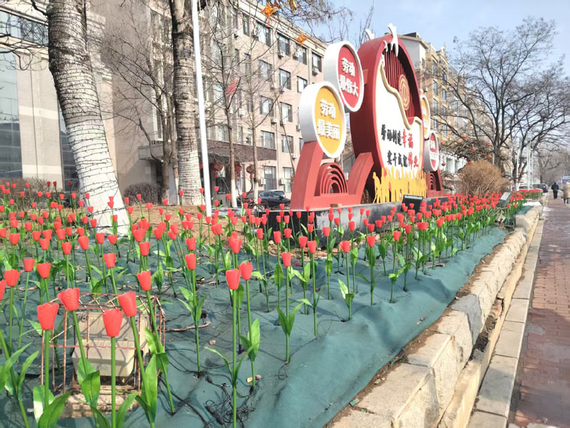 惜别了“鲤鱼”,前往渤海大街。在盼盼路口,两大片“郁金香花”一齐开放,令人心旷神怡。这预示着马年的营口各行各业欣欣向荣,前程似锦,捷报频传。