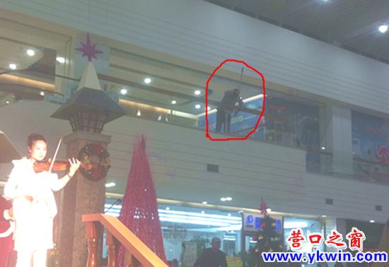 楼下是精彩绝伦的小提琴表演,楼上是清洁工忙碌的身影。