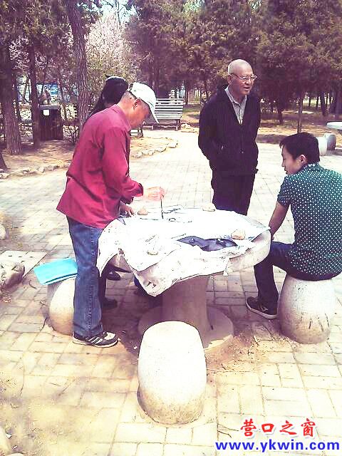 一位七旬老翁在营口人民公园用岁月的精湛笔法描绘出家乡的自然美景。