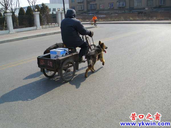 2月12日中午,一辆狗拉三轮车从营口公园路由北向南奔往白庙子,车上坐着一位老人。
