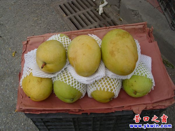 10月8日,来到营口辽河特大桥见到桥头有人卖越南特大芒果,芒果之大有特大的地瓜那么大。值得一提的是,这种芒果在营口市区没见到有卖的。这么大的芒果很可能首次登陆营口。