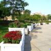营口市财富中心大酒店门前的一个新式花柜11月3日早晨侧翻,里面的花盆和架设在两个花柜之间的标语“营口有礼,从我做起”落地。11月4日,花柜已被扶起,但花盆和标语没有复原。